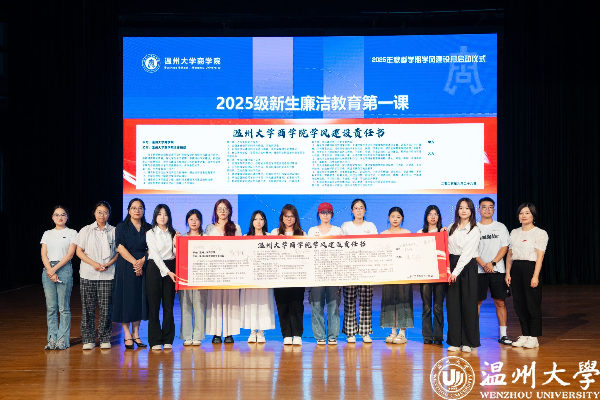 本次启动仪式标志着温州大学商学院2025年秋季学期学风建设与学科竞赛工作全面展开。相信在全体师生的共同努力下,商学院必将培养出更多高素质应用型人才,让“融商”品牌绽放更加夺目的光彩。
