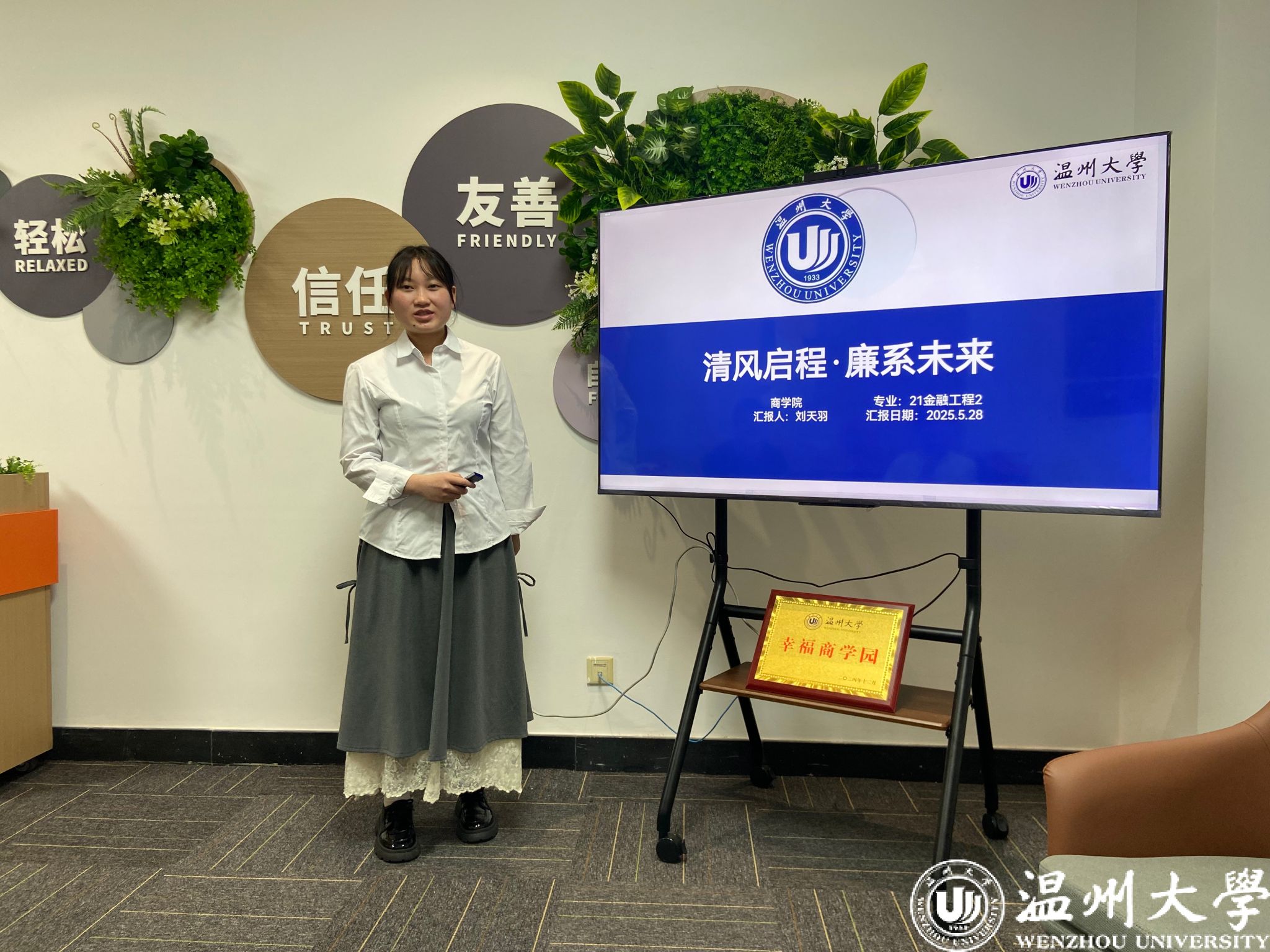 5月28日下午,商学院纪委以“清风启程·廉系未来”为主题举办了一场毕业生廉洁故事分享会,3名毕业班学生代表结合专业特色与职场场景,通过案例剖析与亲身实践,为廉洁从业注入青春思考。