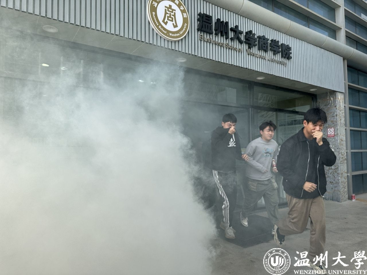 此次演练以“理论+实操”相结合的方式,不仅检验了学院应急预案的可行性和有效性,也切实提升了师生在火灾中的自救互救能力。商学院将以本次活动为契机,进一步健全常态化安全教育机制,持续夯实校园安全基础,努力营造安全、稳定、和谐的育人环境。