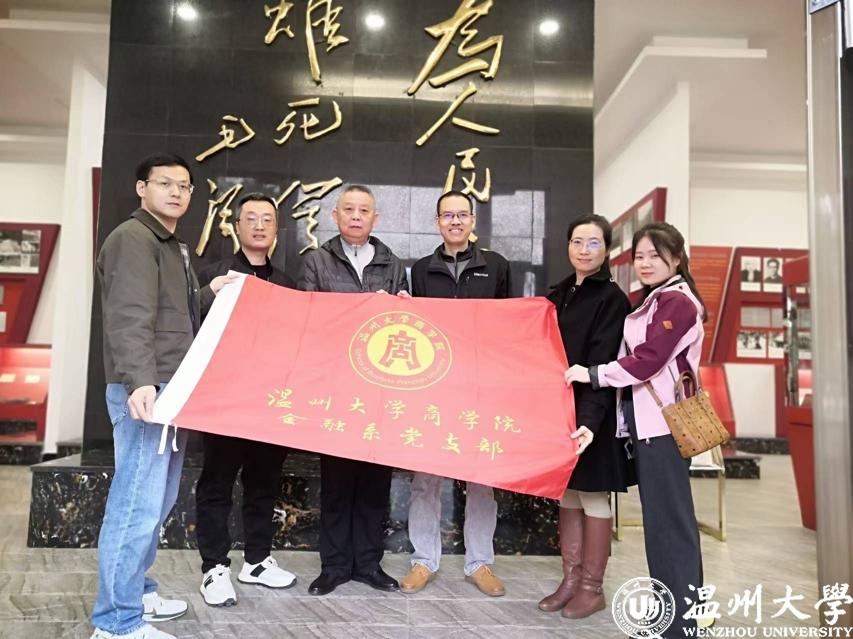 1月4日下午,温州大学商学院教工第一党支部的7名党员教师踏上了前往平阳的党建联合业务活动之旅,首站便是平阳革命烈士纪念馆。在这座承载着厚重历史与光辉记忆的殿堂里,党员教师们被68位民主革命时期烈士的英勇画像和生平事迹深深吸引。每一件展品,无论是武器、生活用品,还是社会主义建设时期烈士的照片,都仿佛是一本本生动的历史教科书,讲述着先烈们不畏艰难、勇于牺牲的感人故事。此次参观不仅是一次心灵的洗礼,更是激发了党员教师们内心深处对革命精神的崇敬与传承的决心,他们誓言要将这份爱国情怀融入日常教学与科研工作中,培养更多具有社会责任感与时代担当的青年学子。